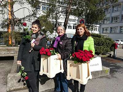 Auch in der Region Biel-Seeland / Kanton Solothurn hat die Unia werktätigen Frauen Blumen verteilt.